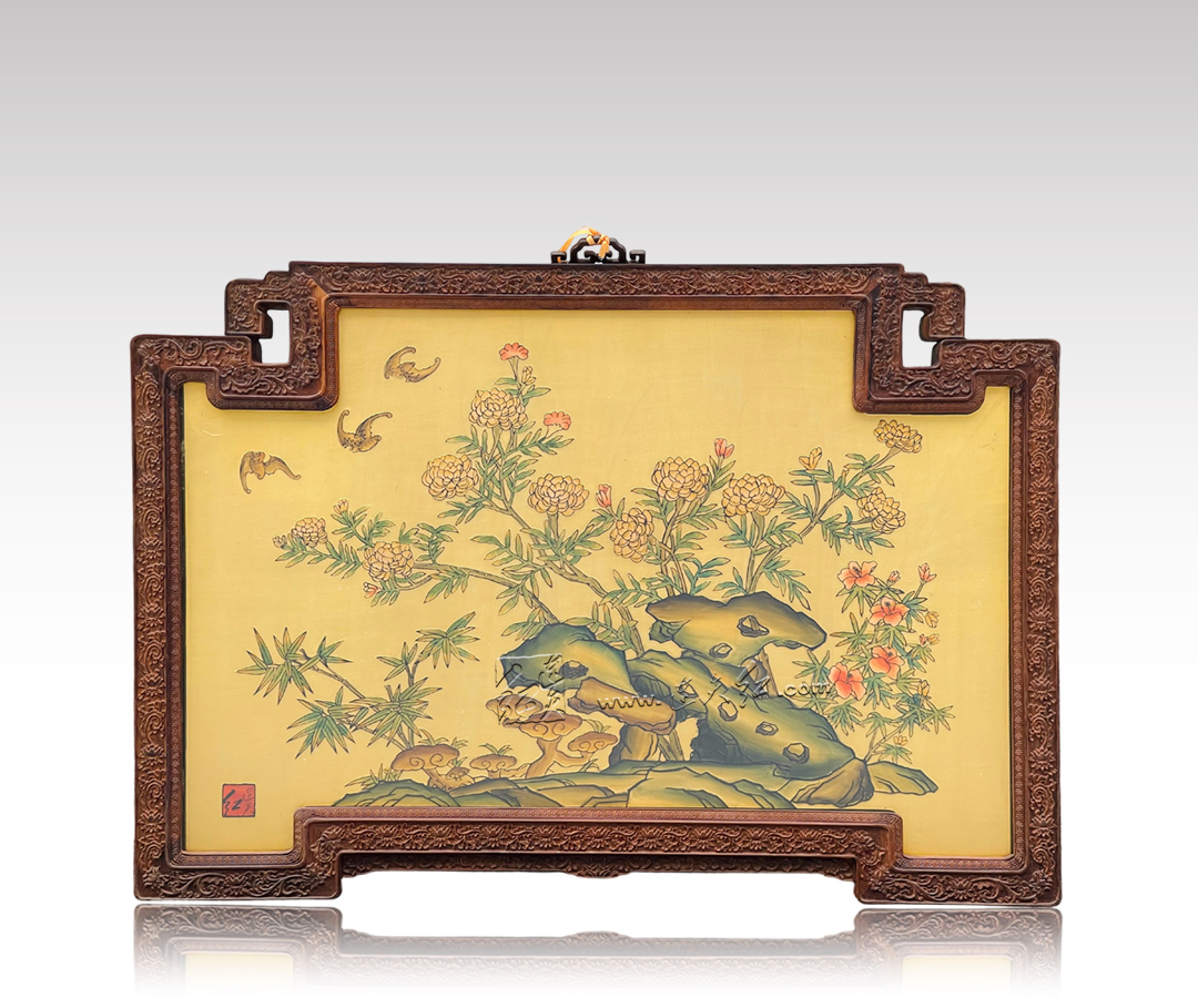 花石瑞蝠图挂屏