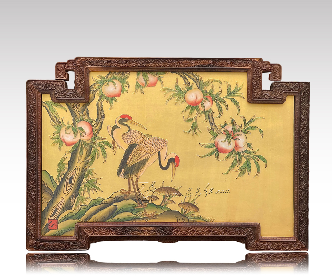 双鹤献桃图